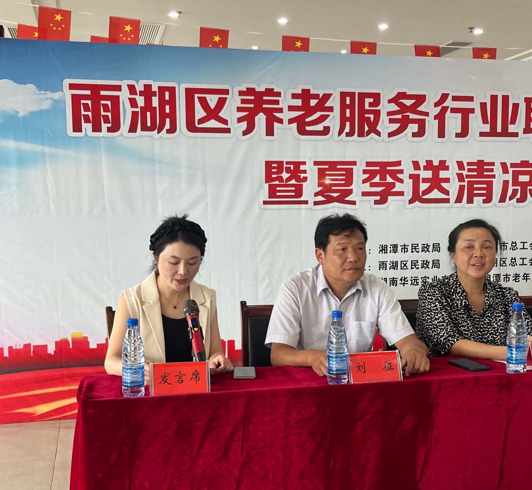 8月23日,雨湖區(qū)養(yǎng)老服務(wù)行業(yè)聯(lián)合工會(huì)授牌儀式暨夏季送清涼活動(dòng)在我院舉行。區(qū)總工會(huì)黨組書記、常務(wù)副主席劉征,人大常委會(huì)副主任、區(qū)總工會(huì)主席譚聯(lián),市總工會(huì)黨組成員、副主席羅軍,湘潭市民政局黨委委員、副局長(zhǎng)韓賢海,雨湖區(qū)委副書記蔣文武,市工會(huì)組織部部長(zhǎng)劉志勇,以及來(lái)自雨湖區(qū)各養(yǎng)老機(jī)構(gòu)的負(fù)責(zé)人代表參會(huì),雨湖區(qū)民政局黨組書記、局長(zhǎng)干建暉主持會(huì)議,華遠(yuǎn)康養(yǎng)中心法人譚燦任首屆工會(huì)主席。