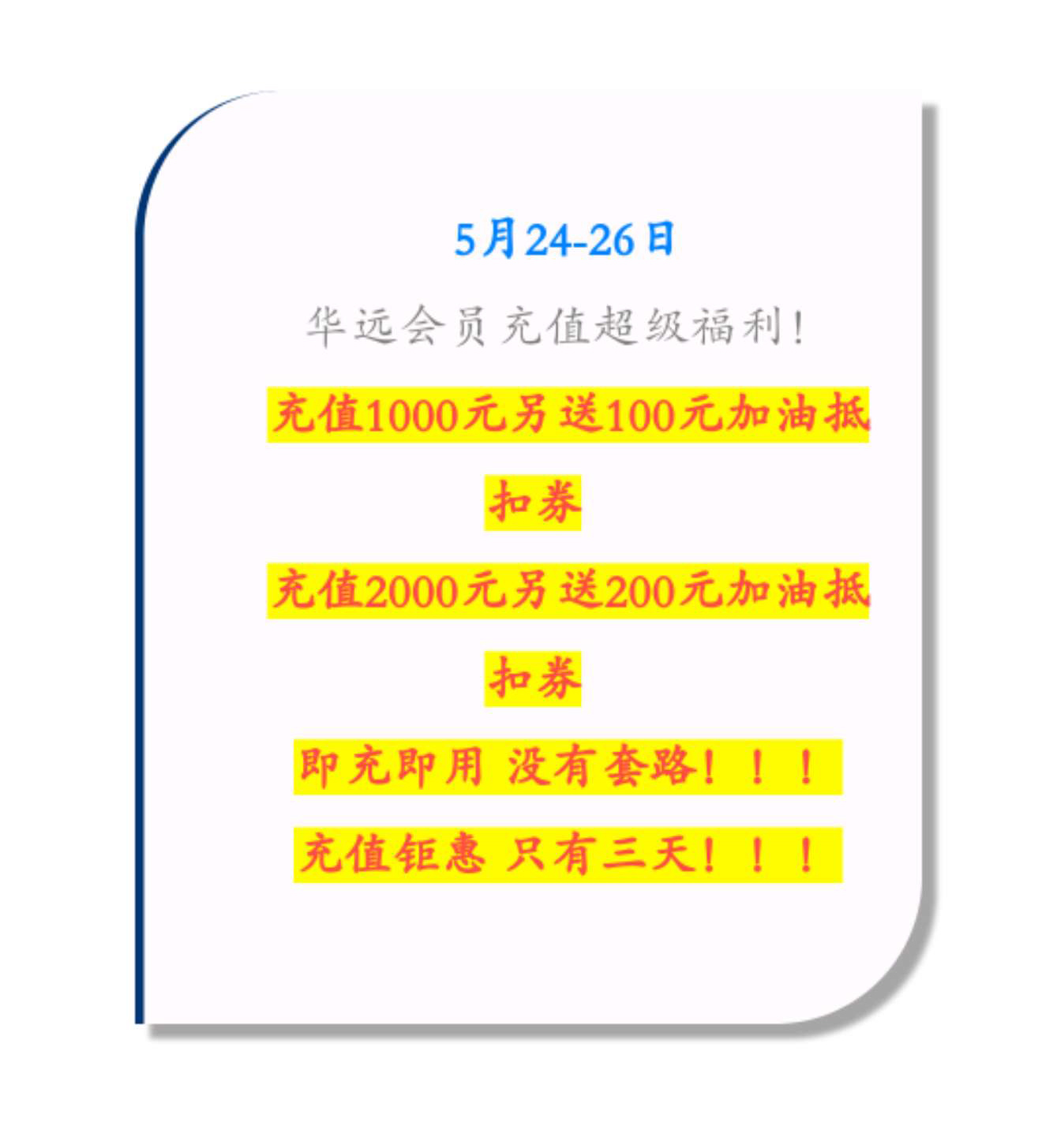 新站開業(yè)鉅惠僅限3天!5月24-26日充值1000送100,會(huì)員日最高優(yōu)惠1元/升!衡陽車主福利最多?。。?/h1>